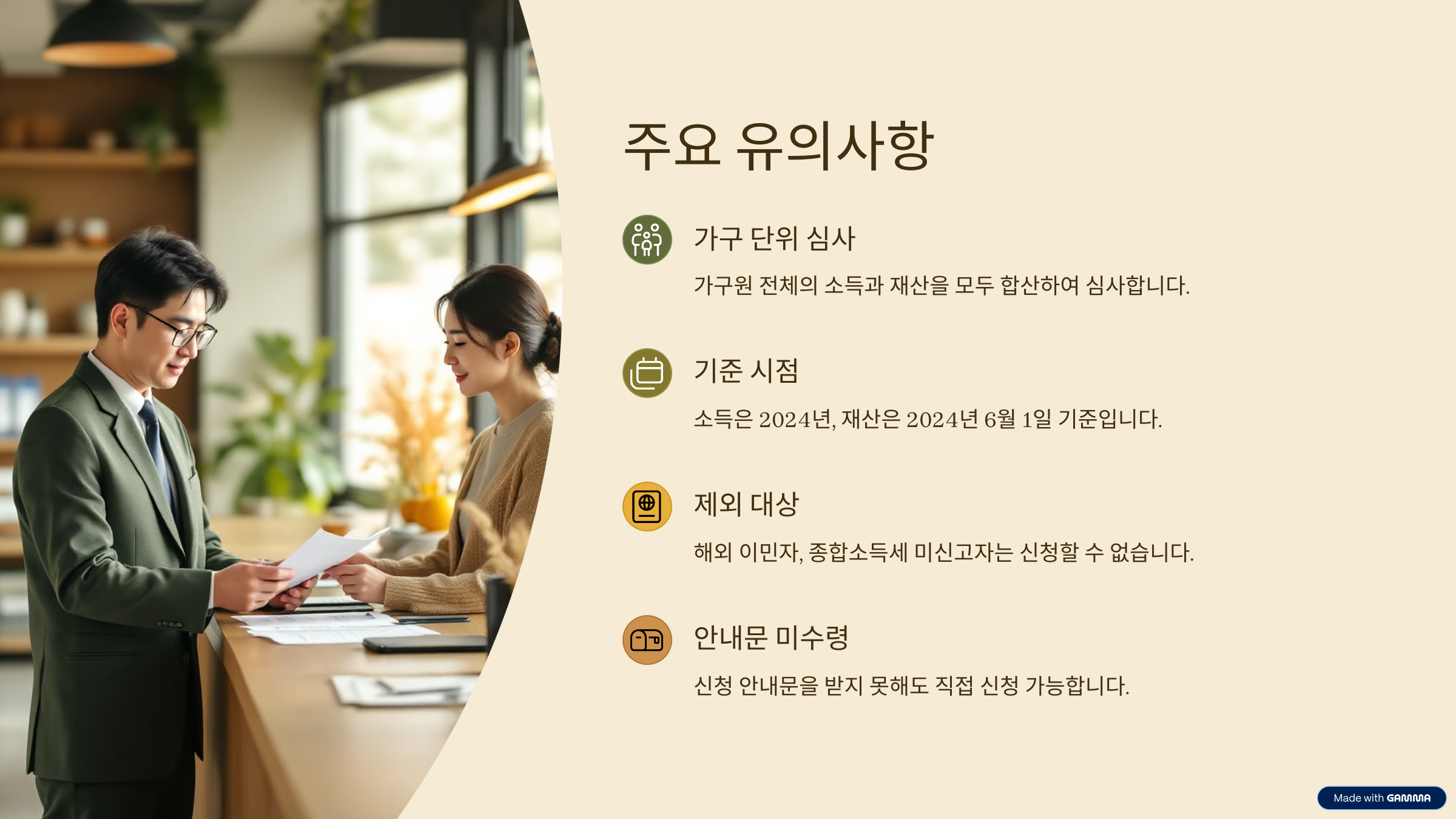 - 2024년 소득과 재산 기준으로 자격 심사