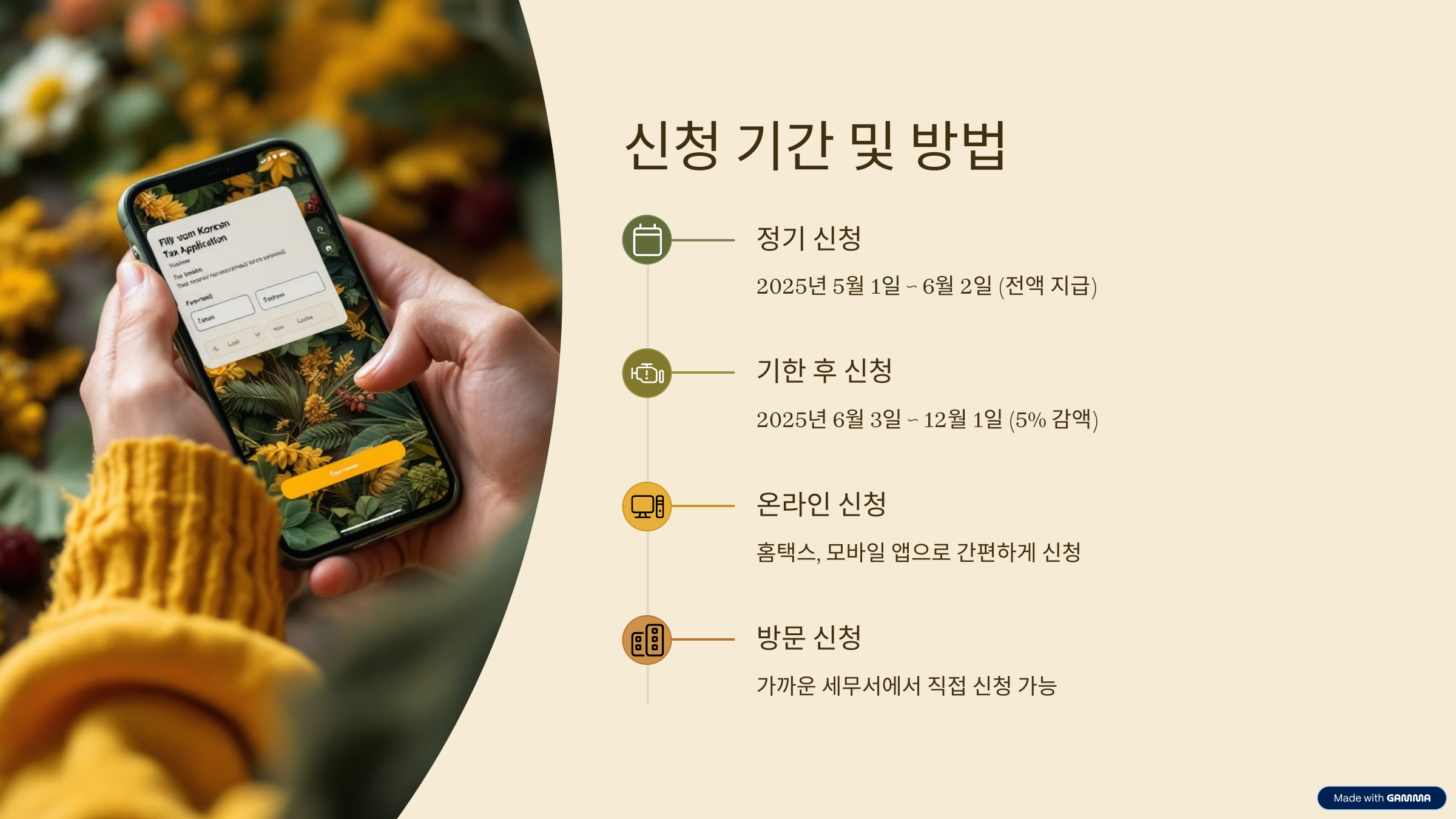 - 신청 방법: 홈택스, 모바일 앱, 세무서 방문
