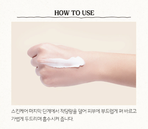 크림 제형으로 발림성이 좋으나 밤 형태로 밀도가 높고 수분감을 가지고 있습니다.